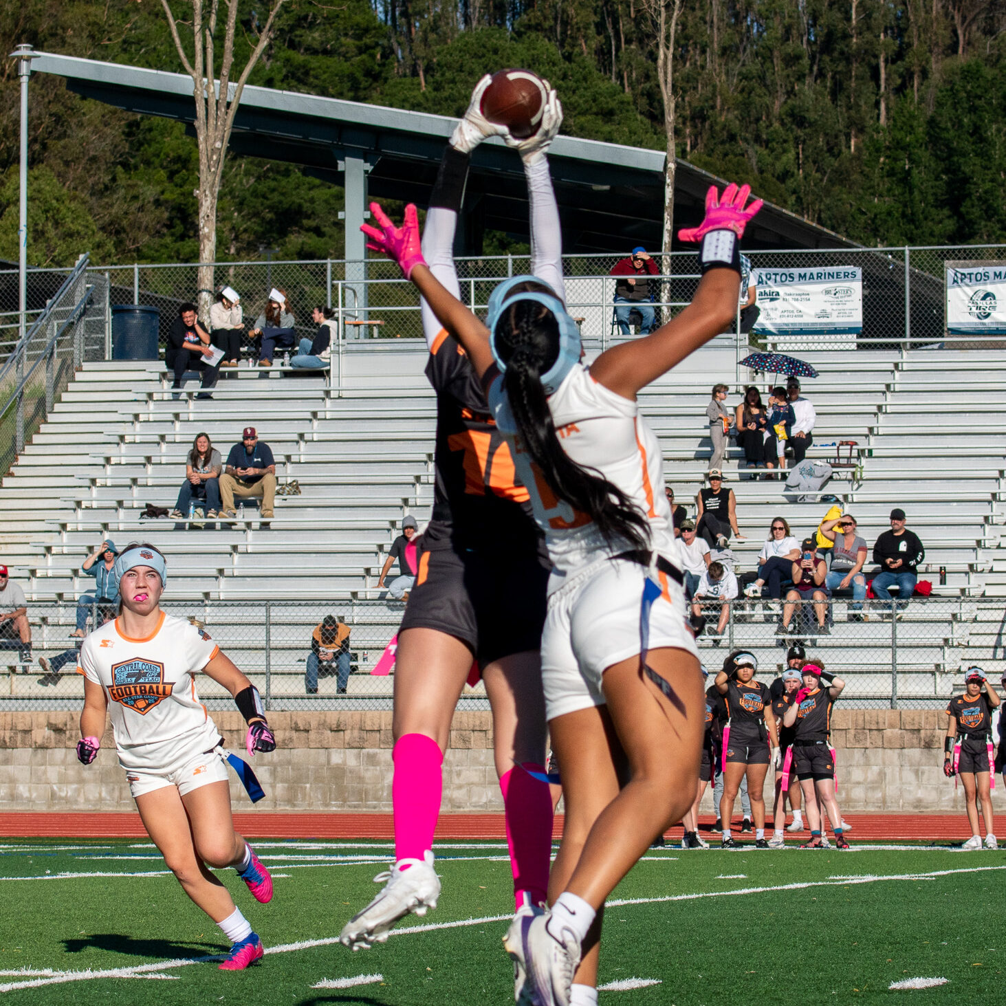 The game itself was electric. Team North, representing Santa Cruz County, was led by Coach Frank Galvan (St. Francis High School), with Eric Kirby (Soquel) and Andy Morris (Santa Cruz) on the sideline. Team South, representing Monterey County, was led by Jose Perez (Hollister), Mike Phillips (North Monterey County), and Marisol Rasul (Alisal). It was more than just a competition—it was a celebration of how far the sport has come and how much further it can go. The players gave everything they had, making highlight-reel plays and proving that girls’ flag football is here to stay.