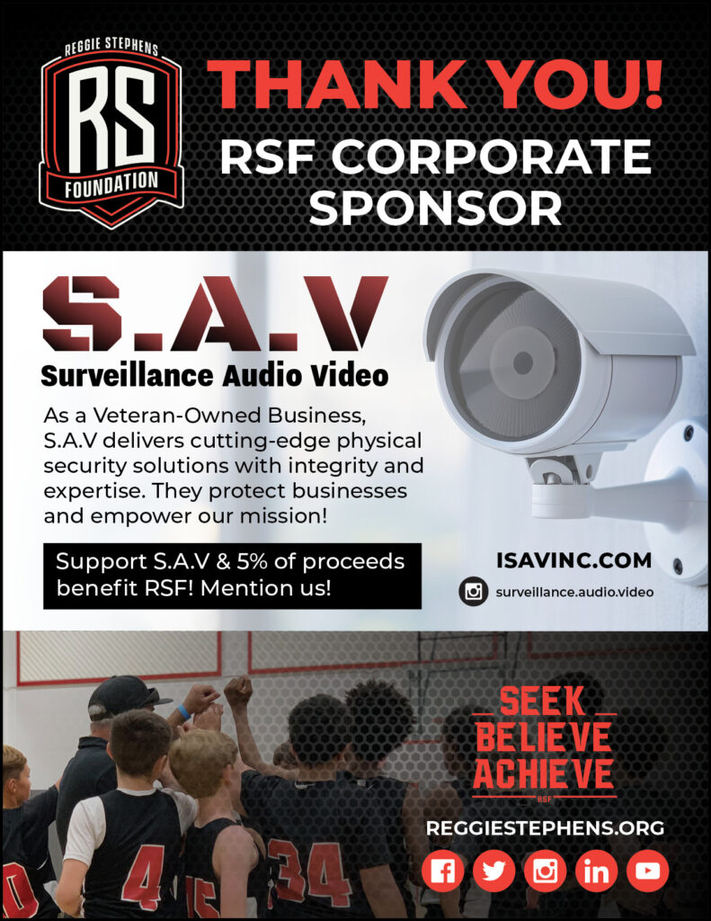 S.A.V is a veteran-owned business founded in 2021 by a Marine veteran who deeply embodies integrity and commitment. With over a decade of industry experience, S.A.V brings unparalleled expertise from security industry leaders to provide honest, knowledgeable, and reliable solutions. They specialize in cloud-based physical security with advanced AI applications, including facial detection, license plate recognition, vehicle make and model search, and weapon detection, ensuring businesses, staff, and assets stay safe and secure. Their services extend to video surveillance, access control, IoT sensors, alarm monitoring, VoIP phone services, IT, networking, and cabling. S.A.V’s dedication to community impact is clear: when you mention seeing them on the RSF website and move forward with their services, 5% of the proceeds will go directly back to the Reggie Stephens Foundation, helping us continue our vital work. You can call them for a free consultation today, or visit their website for more details: isavinc.com.